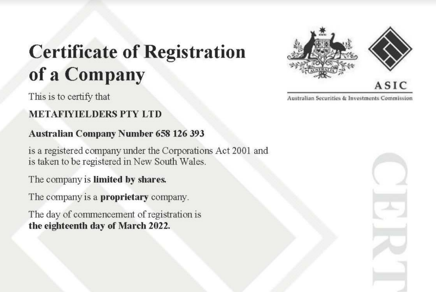 However, what you need to know here is that the Metafi Yielders company is officially registered in the country of Australia. For those of you who don’t know, Australia does have pretty strict investment and financial standards set out for its companies.